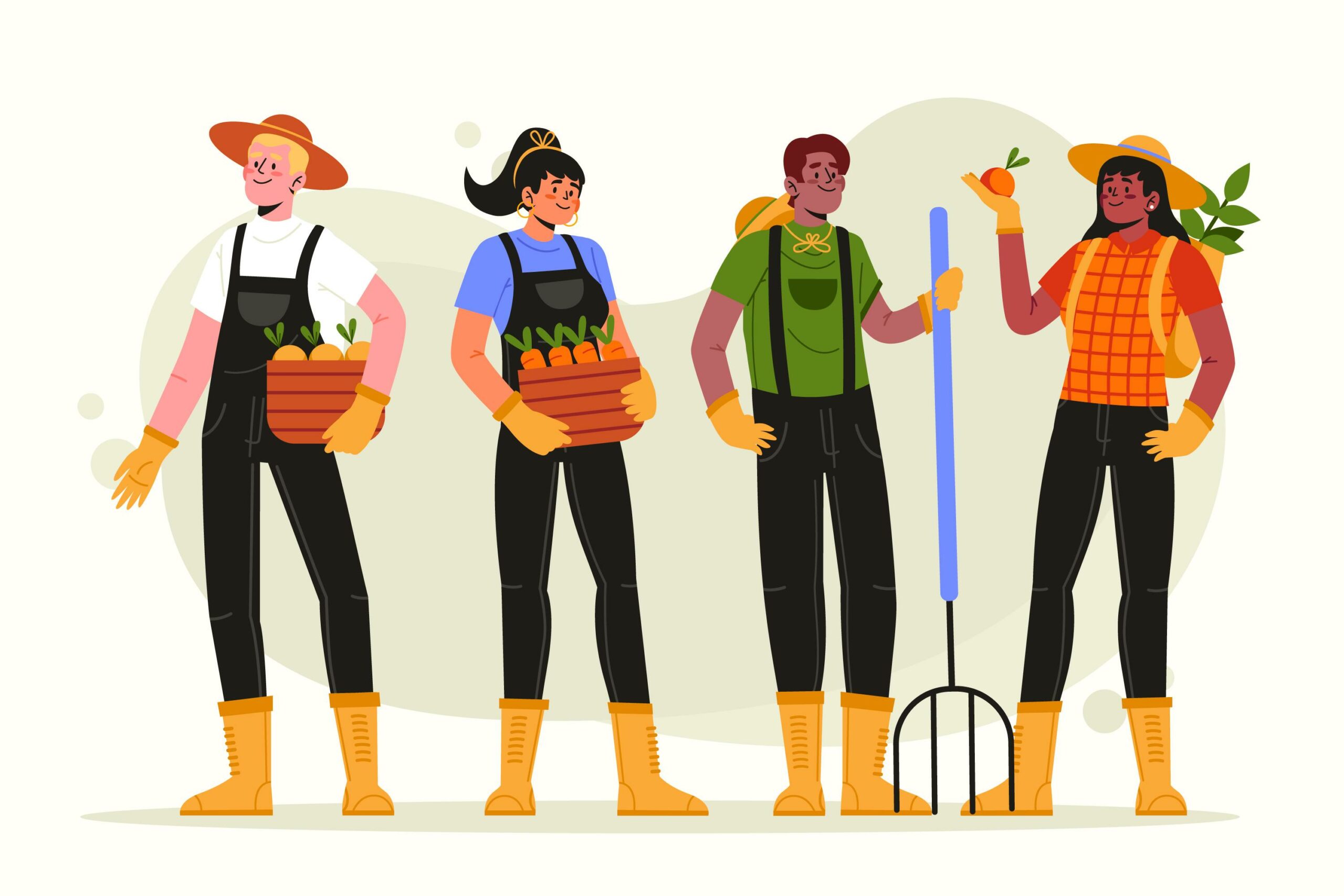 1ère période d’avril à août : implantations, désherbages, entretien des cultures, récoltes fraîches de saison, …